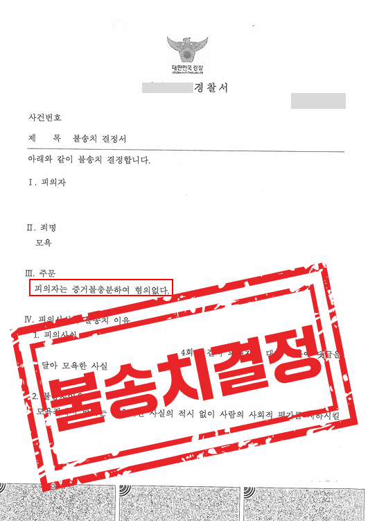 [형사] 모욕죄 혐의, "혐의 없음" 불송치 결정!