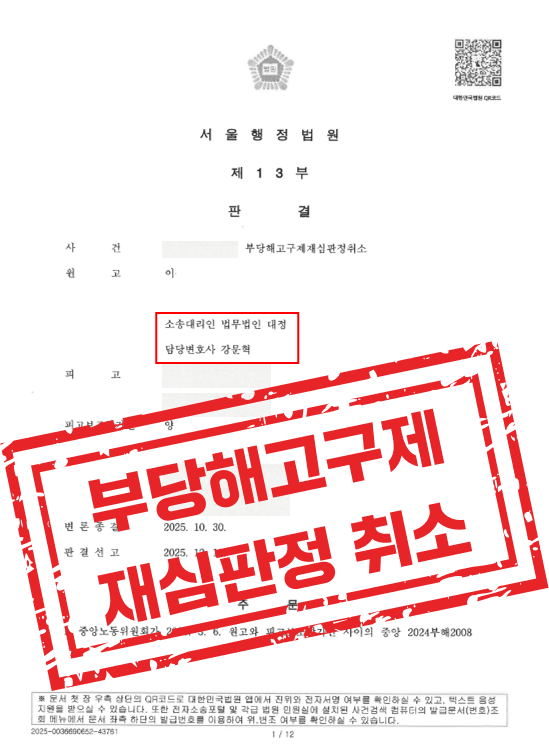 ▶ 부당해고구제재심판정 취소 성공