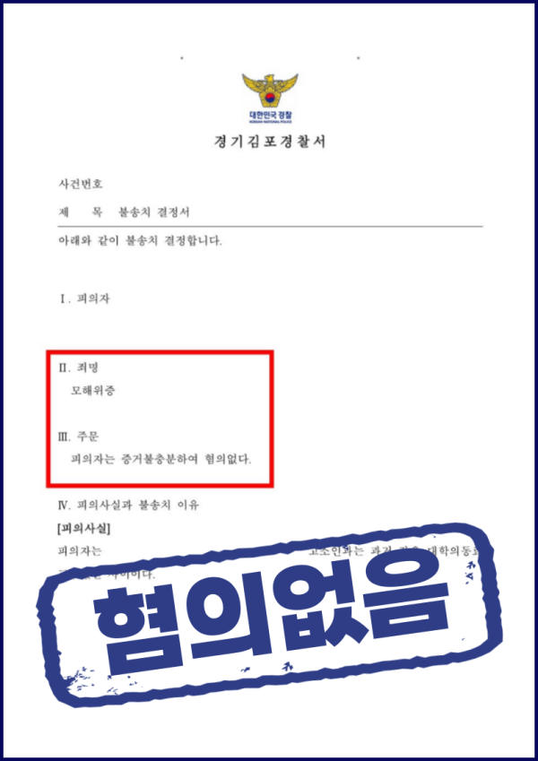 그 결과 수사단계에서 혐의없음 불송치 결정을 받아낼 수 있었습니다.