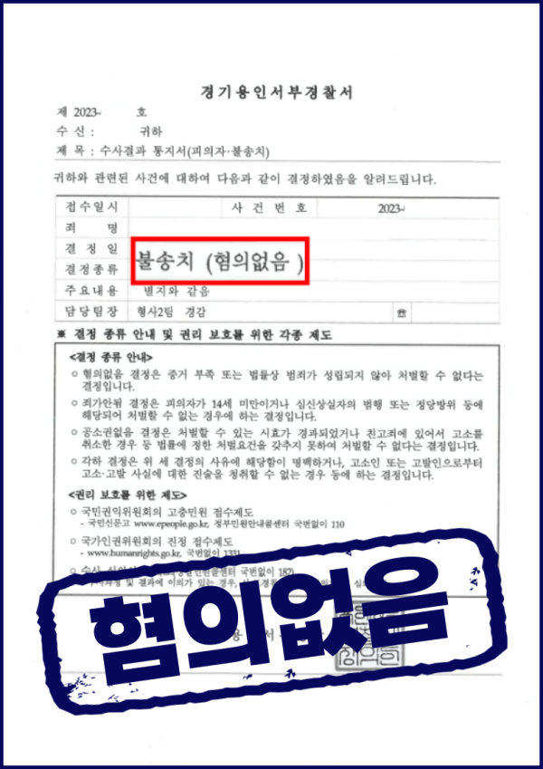 변호인 의견서에 담긴 상당부분이 무혐의 근거로 인용되는 혐의없음 결정을 받을 수 있었습니다.