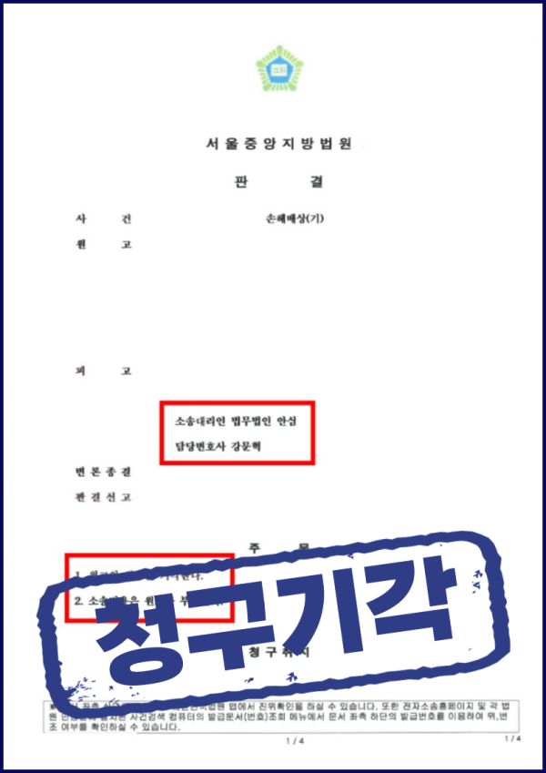 그 결과 상대방의 손해배상 청구를 전부 기각시킬 수 있었고, 승소판결이 확정된 후에는 법에서 인정하는 최대 한도로 변호사보수까지 청구하였습니다.